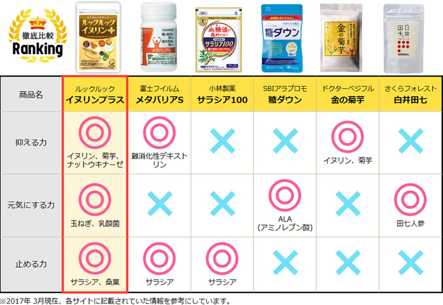 血糖対策にイヌリンが良いということはわかりましたが、メーカーによってはイヌリン以外のサプリも色々あったので、【血糖に対する働き】を中心に比較してみました。